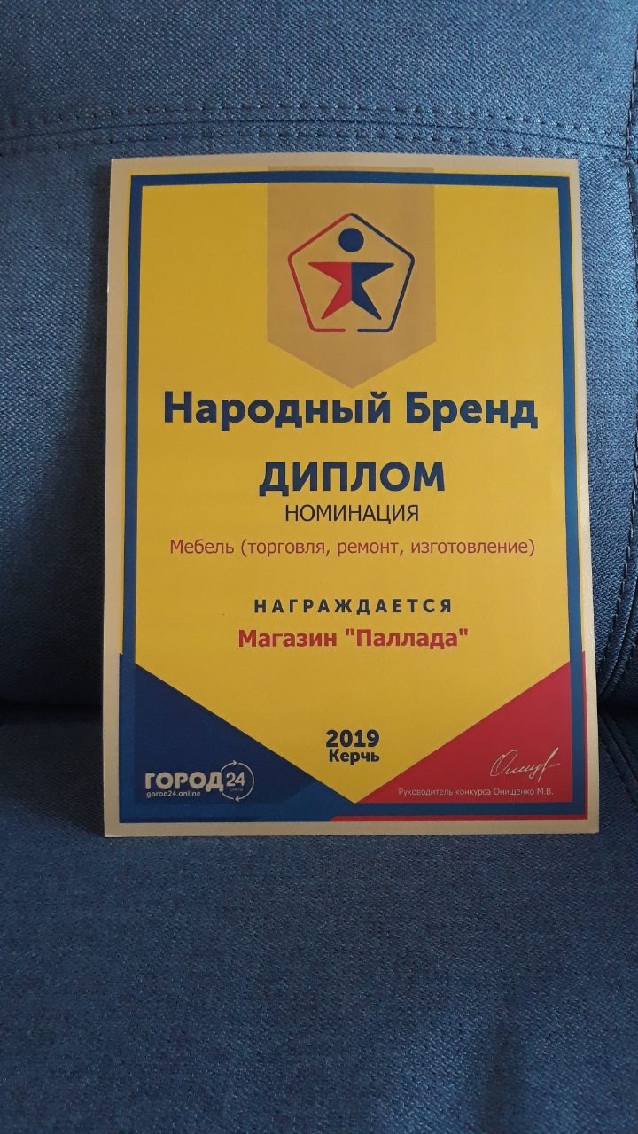 По итогам голосования конкурса «Народный бренд» магазин «Паллада», признаны лучшим мебельным магазином города Керчь в 2019 году!