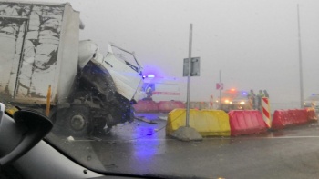 По сообщению источника, из-за аварии на дороге образовалась пробка длинной около трех километров. В социальной сети "ВКонтакте" очевидцы также выкладывают кадры с места аварии. На видео видно, что на трассе стоит густой туман, как пишут в комментариях - именно он мог стать причиной ДТП.