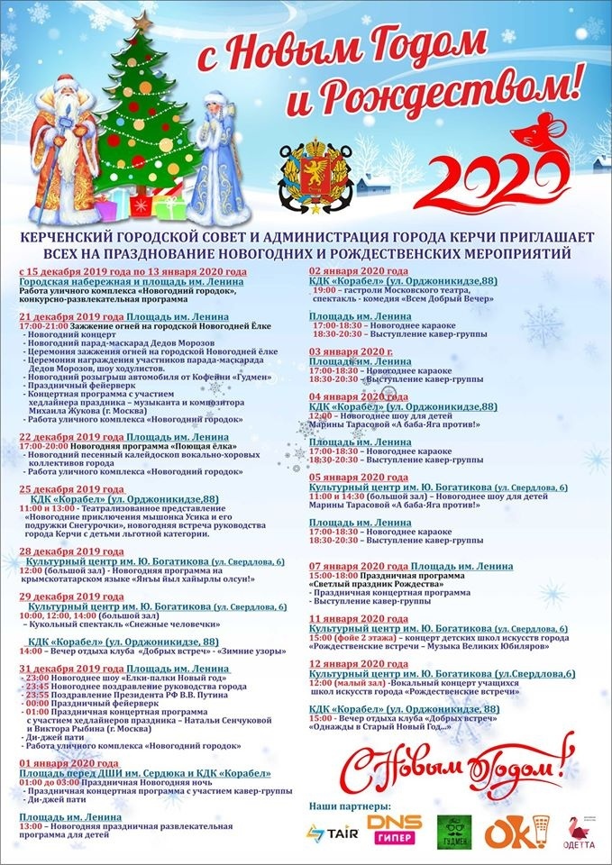 Остались считанные дни до встречи Нового 2020 года! Мы напоминаем керчанам, что на площади им. Ленина 31 декабря с 23:00 до 03:00 состоится праздничная новогодняя программа: