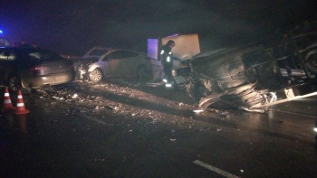 По прибытии спасатели выяснили, что на дороге столкнулись 4 автомобиля. Три человека пострадали, один - получил травмы несовместимые с жизнью.