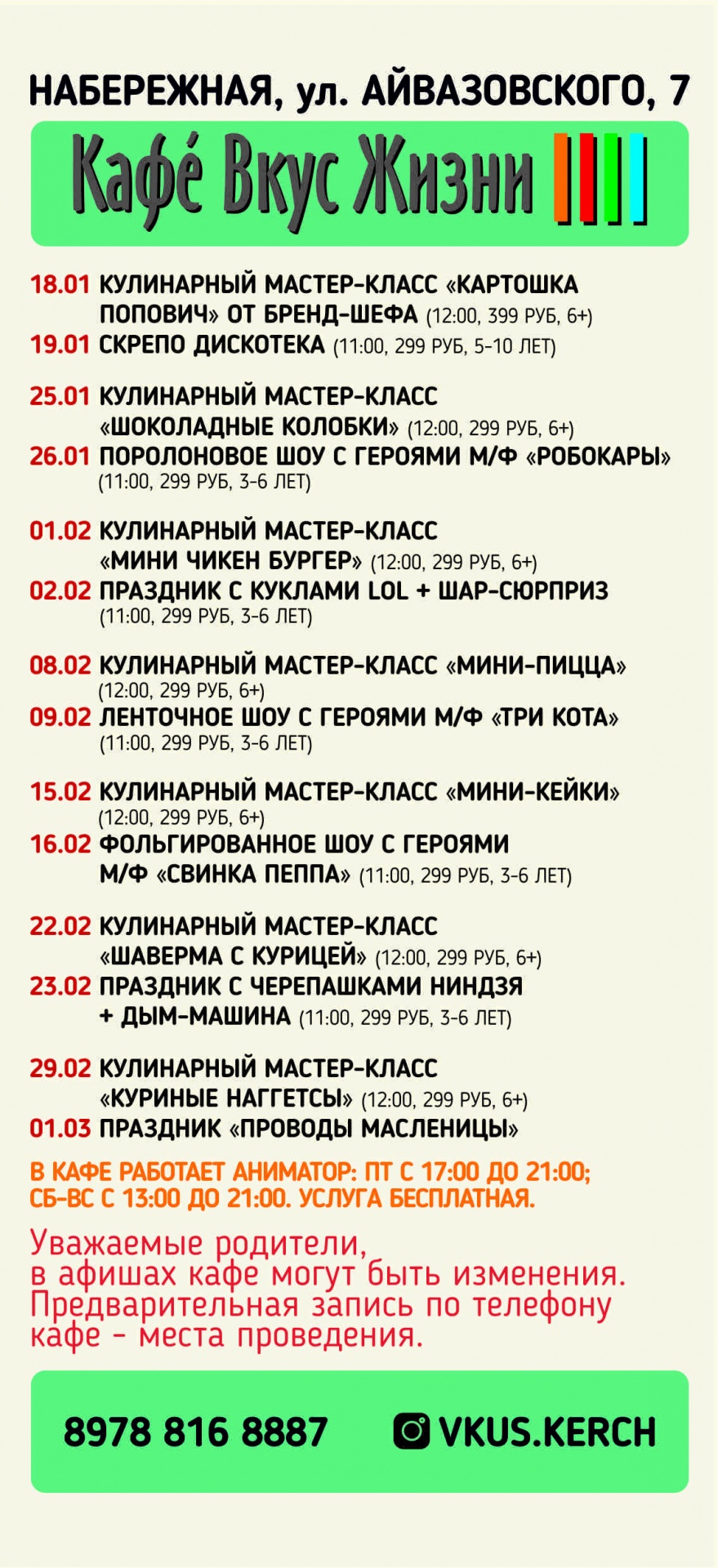 Оплата билетов осуществляется только в кафе по факту. Количество мест ограничено!