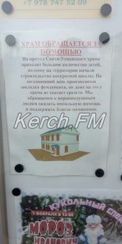 При входе в саму церковь висит объявление, в котором сказано, что на строительство у храма не хватает средств.