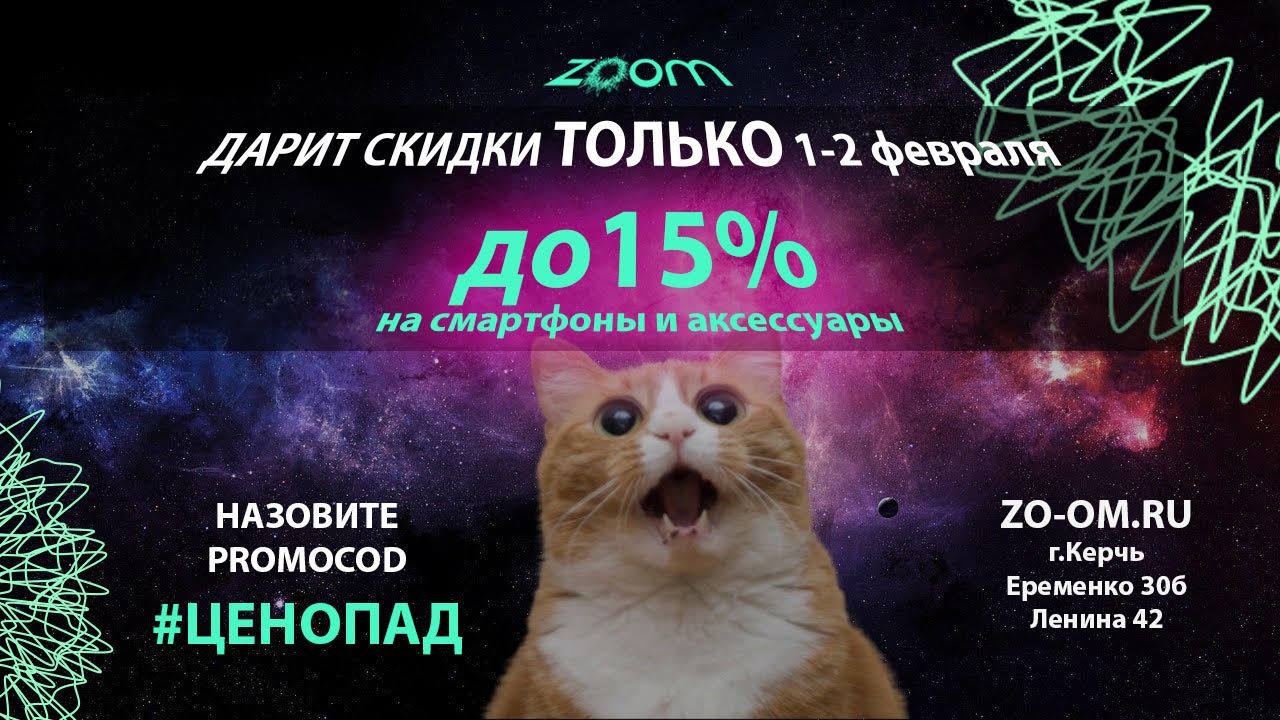 ТОЛЬКО с 1 по 2 февраля, по промокоду #ЦЕНОПАД делаем скидки на смартфоны и телефоны 5% аксессуары 15%!