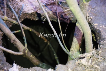 В Керчи на улице Суворова, около дома 19, на проезжей части провалилась дорога. В яму керчане установили ветки. Стоит отметить, что яма глубокая и в любой момент проезжающая машина может провалиться под асфальт, - передает Керчь.ФМ.