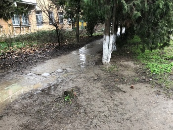 Люди говорят, что въезд во двор здесь абсолютно всегда в воде.