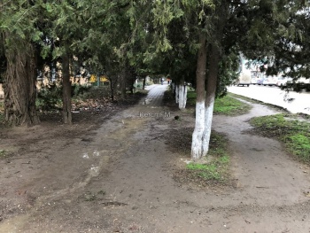 В Керчи пешеходная дорожка в районе остановки «Дружба» затоплена водой и грязью. Об этом Керчь.ФМ сообщили постоянные читатели. Керчане отмечают, чтобы пройти к остановке, приходится идти по проезжей части или, если земля подсохла - по земле и траве.