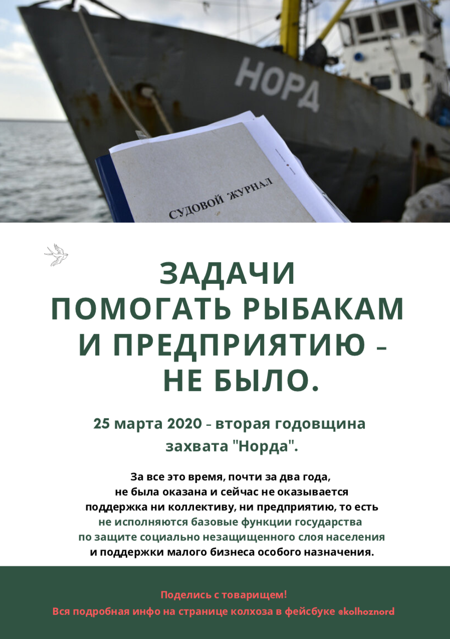 До этого дня у нас жила последняя надежда на спасение. Мы называли это «Проектом выживания» и  начали его в октябре 2019 официальным письмом на имя Главы Крыма. Тогда, после провалов тендеров по приобретению судна взамен «Норда», мы официально попросили - для спасения предприятия и социальной защиты коллектива и около 20 семей из Керчи -  оказать нам посильную помощь и разрешить выкупить старое транспортное судно в собственность, поскольку обеспечиваем работой самые незащищенные социальные слои жителей Крыма. В том же письме мы указали, что за наши последние деньги просили продать судно по разумной цене.