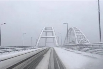 "Движение по Крымскому мосту выполняется в штатном режиме. С установленной периодичностью проводится очистка дороги от осадков и обработка дорожного полотна водно-соляным раствором. В связи с понижением температуры воздуха действует рекомендация для водителей на скорость движения 60 км/час", - сообщили в Инфоцентре "Крымский мост".