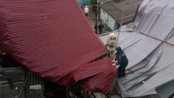 Пострадавших здесь не было. Сотрудники МЧС с помощью шанцевого инструмента провели работы по разбору кровли.