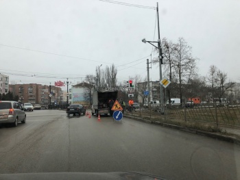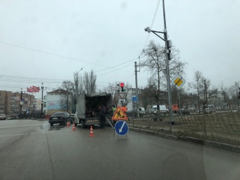 В Керчи на перекрестке дороги по Мирошника-Еременко перекрыта одна полоса дороги, - передает Керчь.ФМ. На месте находился автомобиль с рабочими, участок оградили специальными конусами. Перед работами поставили знак.