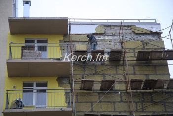 В Керчи строители начали восстанавливать фасад дома для депортированных. Уже практически установили улетевший утеплитель. Напомним, 12 февраля с дома улетел утеплитель, а внутри дома трещины и плесень, - передает Керчь.ФМ.