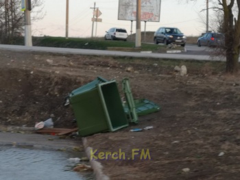 Также, ветром унесло и перевернуло мусорные контейнеры.