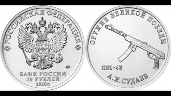 — монета «Конструктор оружия А.И. Судаев» расположено рельефное изображение пистолета-пулемета Судаева, внизу слева — надпись: «ППС-43»; по окружности имеются надписи, вверху: «ОРУЖИЕ ВЕЛИКОЙ ПОБЕДЫ», внизу: «А.И. СУДАЕВ»;