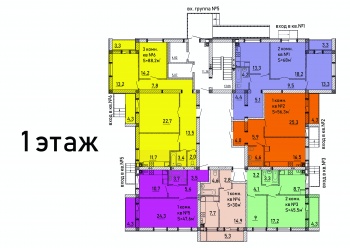 На первых этажах предусмотрены отдельные входные группы, квартиры будут иметь свой выход на улицу как в таунхаусах.