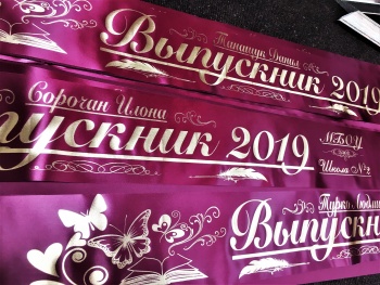 И пусть она, эта ВЫПУСКНАЯ ЛЕНТА, будет исполнена на достойном материале, с наименованием вашего учебного заведения, класса или группы в которой вы учились, с годом выпуска и, самое главное, с вашем ИМЕНЕМ и ФАМИЛИЕЙ.