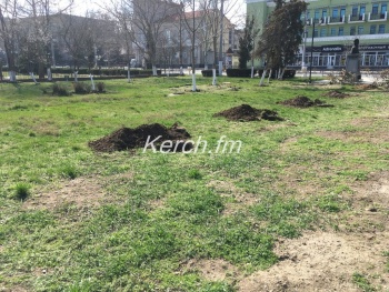 В сквере на морвокзале в Керчи выкопали лунки для деревьев