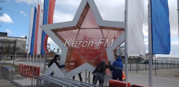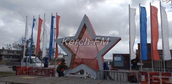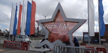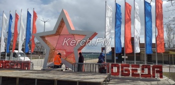 В Керчи 16 марта на сцене, которую поставили на морвокзале, установили звезду, - передает Керчь.ФМ. Также сцену украсили флагами.
