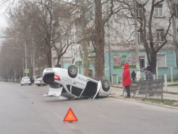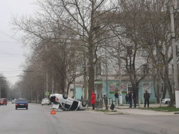 На Горьковском кольце в Керчи перевернулся учебный автомобиль
