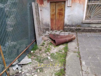С бывшего здания КГМТУ по улице Орджоникидзе ветром снесло часть кровли. Листы металла упали на тротуар, - передает Керчь.ФМ.