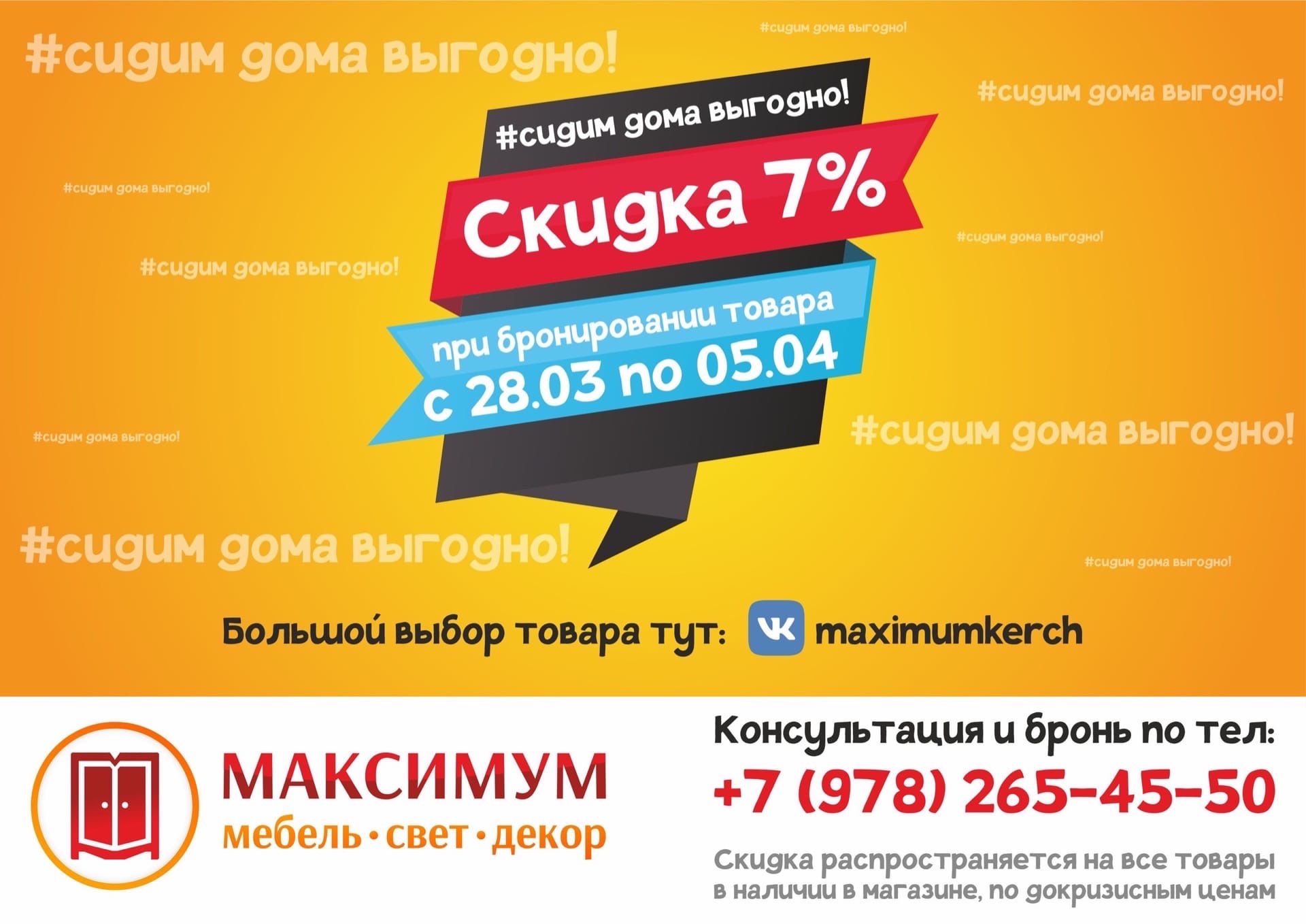 ⚠При бронировании товаров в телефонном режиме в период 28.03 - 05.04.2020 г. предоставляется скидка на все группы товаров 7% по докризисным ценам.?