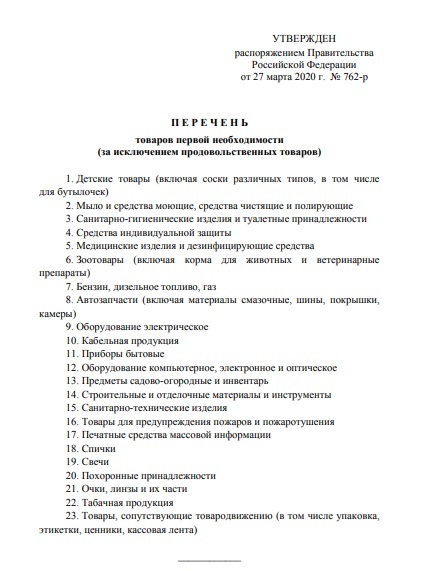 Так, в распоряжении Правительства РФ, список гораздо больше. К примеру, можно торговать запчастями, очками, табачной продукцией, стройматериалами и так далее.
