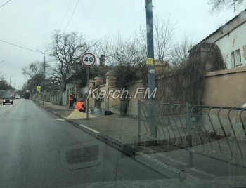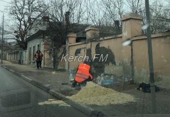 В Керчи 30 марта коммунальщики в специальных жилетах и защитных масках приводят в порядок забор у дороги по ул. Чкалова, - передает Керчь.ФМ.