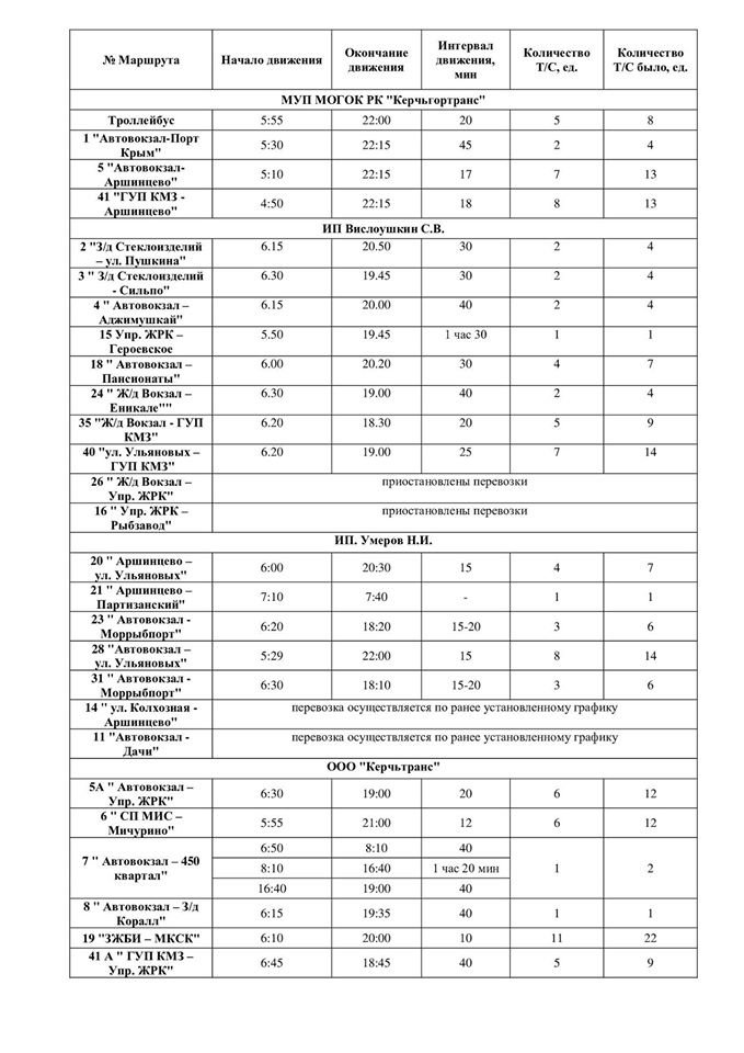 Расписание движения автобусов в Керчи 1 по 5 апреля