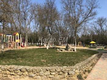 Заехали к парку со стороны ул. Нестерова, зашли. Здесь работают коммунальщики, прогуливаются пожилые люди одиночно. Площадки обнесли сигнальными лентами.