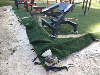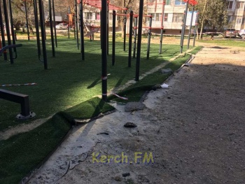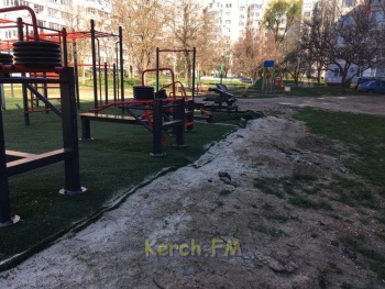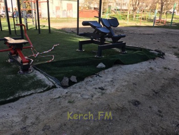 Современный спортивный комплекс, установленный 3 месяца назад по улице Генерала Петрова, 20, «пошел волнами». Подложка без надлежащего укрепления поднялась и начала рваться. Фотографии в редакцию Керчь.ФМ прислали постоянные читатели.