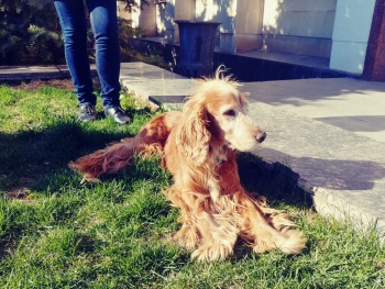 Нашлась собака, ухоженный чистый спаниель, с ошейником, очевидцы говорят, что сбежал из маршрутки. Сейчас находится по адресу: ул. Кирова, 5.
