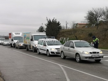 В Керчи 15 апреля на светофоре по улице Чкалова - огромная пробка. Это связано с тем, что на выезде из Керчи правоохранители проверяют каждого, - передает Керчь.ФМ.