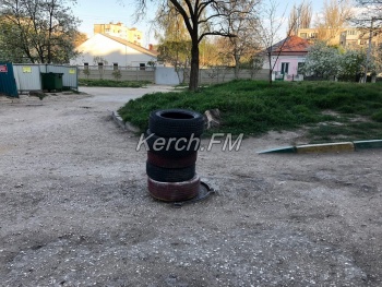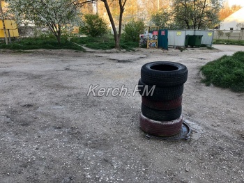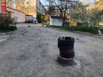 Керчане в редакцию  Керчь.ФМ пожаловались на открытый люк на внутридворовой дороге. Но, люк решили не закрывать, а обозначить для прохожих и автомобилей - на него положили целых пять покрышек.