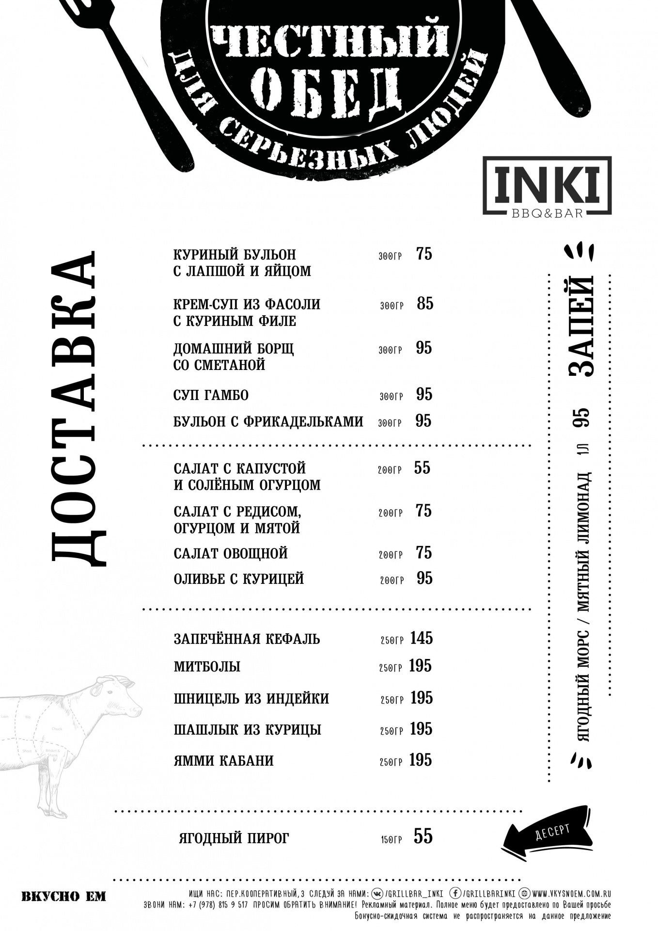 Оформляй заказ на сайте https://vkysnoem.com.ru/ или просто по телефону + 7 978 060 9 222.