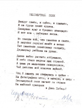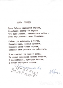 «Добрый день! Моя знакомая пенсионерка Чернявская Валентина Ивановна, 1936 г.р., сама написала эти стихи, она почти ослепла и попросила помочь отправить Вам. Спасибо», - написала читательница сайта и приложила стихи Валентины Ивановны.