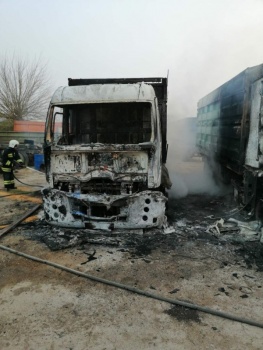 По прибытии на место обнаружено, что горят кабины двух рядом стоящих грузовых автомобилей. Возгорание оперативно ликвидировано в 06:12 на площади 6 квадратных метров. Причина пожара устанавливается.