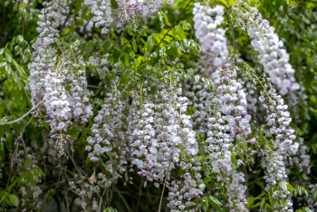 Нынче просто поражают взгляд невероятно пышные каскады глициний, напоминающие пенный цветочный водопад. А наша коллекция сирени примечательна ещё и тем, что с 2011 года Никитский сад - участник федерального проекта «Сирень Победы», цель которого - высадить в каждом из 13 городов-героев аллеи из саженцев отечественных сортов сирени, названия которых связаны с событиями или героями Великой Отечественной войны. Селекционерами НБС созданы такие уникальные сорта, как «Севастопольский вальс» и «Эльтиген», идёт работа над созданием сортов «Брест» и «Героям Сталинграда». В этом году цветение сирени активно продолжается и после Дня Победы, а всего в НБС насчитывается более 100 сортов и форм зарубежной и отечественной селекции, часть из которых уже включена в коллекцию, а часть находится в изучении и на размножении».