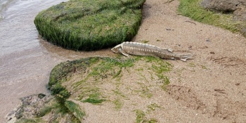 На берег в районе Аршинцево выбросило мертвого осетра