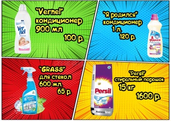 В нашем магазине вы сможете подобрать товары для уборки и стирки, средства личной гигиены, ухода за детьми и многое другое по очень приятным ценам.