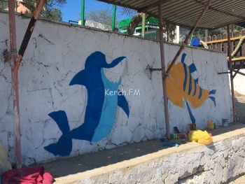 В Керчи у пляжа на «Молодежке» женщины украшают стену граффити. Уже видно, что первыми рисунками будут дельфин и рыбка, - передает Керчь.ФМ.