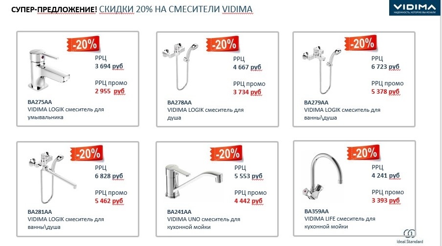 АКЦИЯ на смесители п-во Болгария VIDIMA -20%