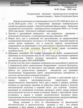 «12 мая 2020 года Подрядчик заблаговременно, еще до подписания самого Контракта, с целью подготовки к предстоящим работам, направил в ГУП РК«Крымэкоресурсы», как единственному региональному оператору заявление о заключении договора на прием и утилизацию полученных в ходе исполнения Контракта отходов. Собственный договор УЖКХ с ГУП РК«Крымэкоресурсы» нам не предоставили.
