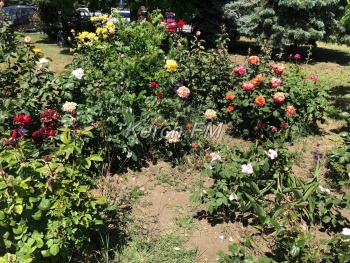 Много разных роз цветет и в других местах сквера. Также здесь покошена трава и нет мусора.
