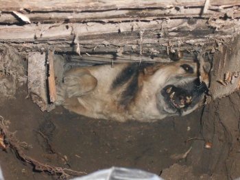 По прибытии к месту вызова спасатели выяснили, что собака застряла в трубе ливневой канализации. Специалисты «КРЫМ-СПАС», с помощью шанцевого инструмента (сделали подкоп) извлекли собаку и передали хозяевам.