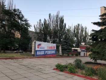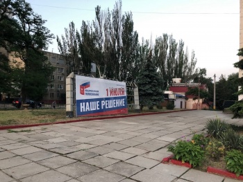 В Керчи у ДК «Корабел» появился большой агитационный баннер за голосование по поправкам в Конституцию, которое пройдет 1 июля, - передает Керчь.ФМ. Отметим, его прикрепили на стенд для афиш. Сам стенд сильно покосился после зимы.