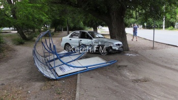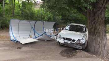 В Керчи 24 июня, около 6:00 часов утра, на улице Войкова произошла авария. Автомобиль марки «Chevrolet» вылетел на обочину, врезался в дерево и снес остановочный павильон «Фабрика кухня».