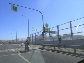 С разницей в 2 минуты керчанин запечатлел движение на красный мотоциклистов на путепроводе по шоссе Героев Сталинграда