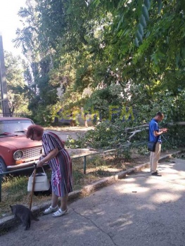 Керчанка сообщила, что, услышав треск дерева, пошла отгонять припаркованную машину, и, буквально через полчаса, дерево упало на дорогу.