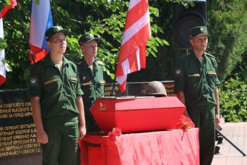 В Керчи 27 июня в сквере Славы передали останки советского воина и медаль «За боевые заслуги» делегации из Архангельской области для дальнейшего перезахоронения на его родине. Вместе с останками передали горсть керченской земли, которую солдат отважно защищал, и за которую погиб.