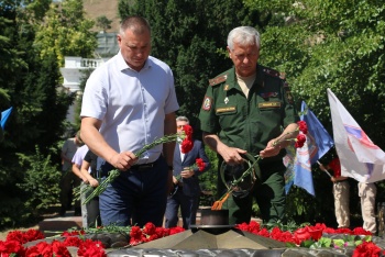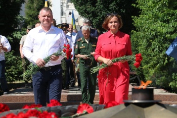 В память о советских воинах - освободителях возложили цветы к Вечному огню.