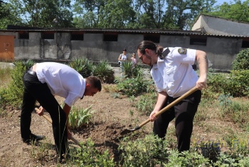 После работ в молодом хвойном сквере., пока еще курсанты надели на бюст Максима Горького, а среди своих, просто Максима, традиционную тельняшку и фуражку.